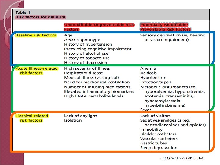 Bibliografía ICU delirium: an update. Shirley F. Jones and Margaret A. Pisani. Curr Opin Crit Care 2012, 18: 146– 151. Preventing Delirium in the Intensive Care Unit. Nathan E. Brummel, MD, Timothy D. Girard, MD, MSCI. Crit Care Clin 29 (2013) 51– 65. Pharmacological and Nonpharmacological Management of Delirium in Critically Ill Patients. Dustin M. Hipp & E. Wesley Ely. Neurotherapeutics (2012) 9: 158– 175. Delirium in the Intensive Care Unit: A Review. Alessandro Morandi, MD, MPH, James C. Jackson, Psy. D. Neurol Clin 29 (2011) 749– 763