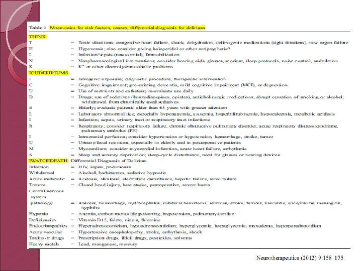 Diagnóstico ü Alta frecuencia y consecuencias: Importante su detección. ü Valoración ü Necesidad ü clínica: Baja sensibilidad. de instrumentos validados CAM-ICU, Intensive Care Delirium Screening Checklist (ICDSC) , Delirium Detection Score (DDS), Cognitive Test for Delirium, and the Neelon and Champagne Confusion Scale.