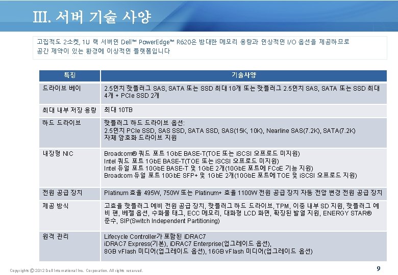 DELL International Inc. 고객을 위한 Power. Edge R 620 표준 제안서 2012. 07. 09