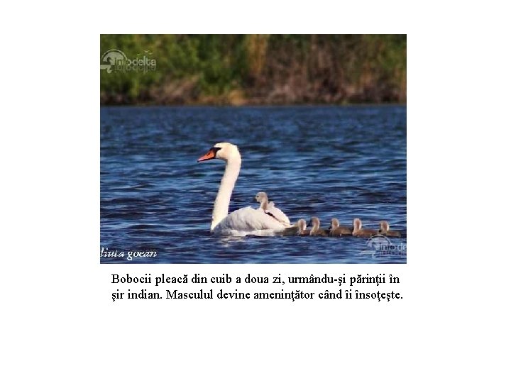 Bobocii pleacă din cuib a doua zi, urmându-şi părinţii în şir indian. Masculul devine ameninţător când îi însoţeşte.
