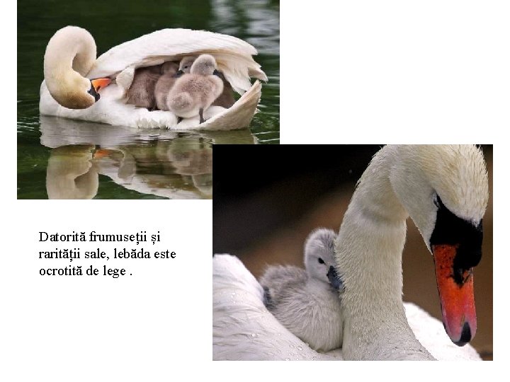 Datorită frumuseții și rarității sale, lebăda este ocrotită de lege.