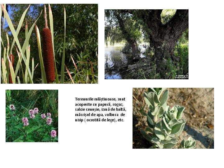 Terenurile mlăștinoase, sunt acoperite cu papură, rogoz, salcie cenușie, izmă de baltă, măcrișul de apa, volbura de nisip ( ocrotită de lege), etc.