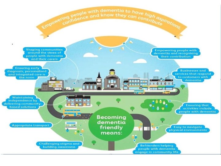 Incidence of dementia (2014) l l l l Less than half the people living with dementia in UK have a diagnosis 850, 000 people are diagnosed in UK 62% are women and 38% are men 1 in 6 people over 80 yrs diagnosed 40, 000 under 65 yrs diagnosed 44 million worldwide diagnosed with dementia; 75 million by 2013; 135 m by 2050 25% of patients in hospital have either known dementia or cognitive impairment We rely on 700, 000 family carers (saving £ 11 billion pa)