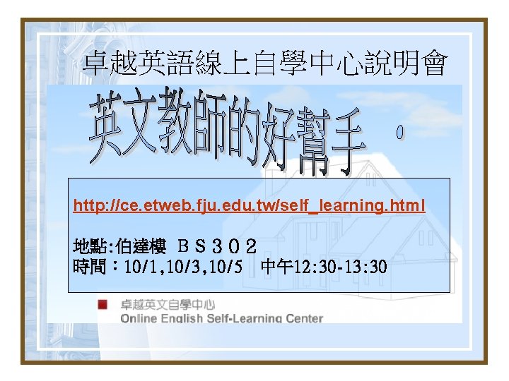 互動教學demo Breeze 連線: Conversation tutor: Cathy (http: //www. breeze. fju. edu. tw /english) Join. Net 連線 Writing tutor: Evelyn (http: //140. 136. 202. 237/m 2/ )