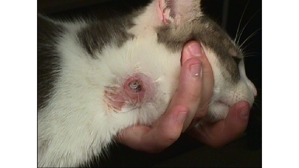 Cuterebra Life Cycle • Adult fly does not feed – lays eggs near entrance of rodent hole • L 1 waits for host, penetrates skin, makes a hole to breathe • L 3 leaves hole in skin, pupates in soil • PPP – 3 -4 weeks • Treatment – surgical removal of entire larva • Allergic reaction if not entirely removed?