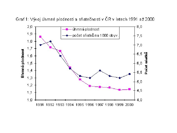 Graf č. 2 - Vývoj hrubé míry sňatečnosti v 90. letech