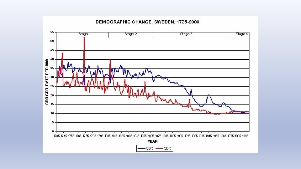 Demographic cycle • FIRST STAGE • It is high stationary stage, characterized by balance of high birth rate and high death rate • Pre Modern times. It was true for all human populations up until the late 18 th. C. when the balance was broken in western Europe.