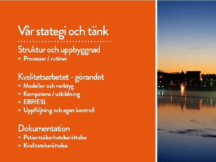 Agenda § SKL: s arbete och organisation för digitaliseringsfrågor § e. Hälsa som ett verktyg för bättre vård och omsorg – Helhet och KASAM § Ledningssystem –systematiskt förbättringsarbete - EBP § Verksamhetssystem - intraoperabilitet