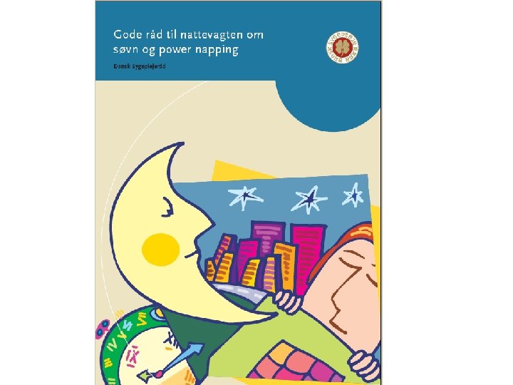 SKIFTBYTTE • morgenskiftet bør ikke påbegynnes før kl. 06. 00 • skiftbytte kl. 07. 00 er bedre enn kl. 06. 00, nattskiftet starter da kl. 23. 00, som øker den sosiale verdi av fritid • morgenskiftet bør ikke starte senere enn kl. 07. 00, det vil forringe søvnen etter nattskiftet • starttidspunkt burde være fleksible for å imøtekomme den enkeltes behov
