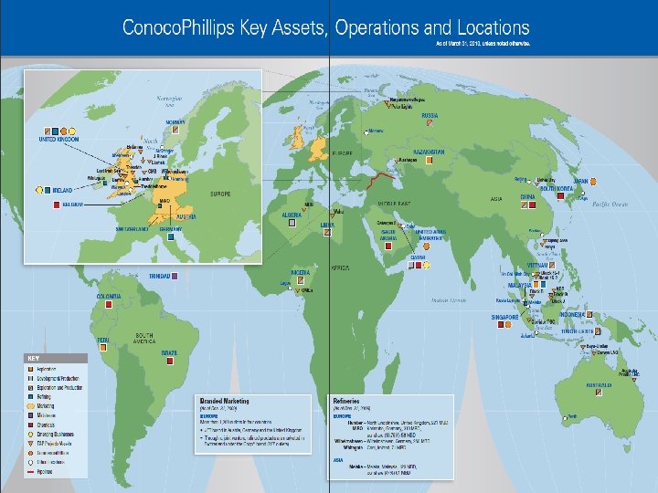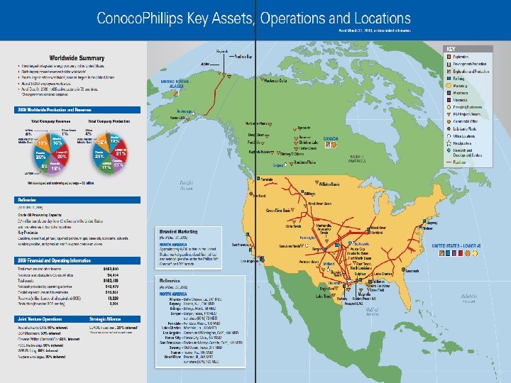 About Conoco. Phillips Ø Conoco. Phillips is an international, integrated energy company with interests around the world Ø Headquartered in Houston, TX Ø 30 countries Ø Approximately 30, 000 employees Ø $153 billion of assets and $149 billion of revenues as of Dec. 31, 2009 Ø Website: www. conocophillips. com