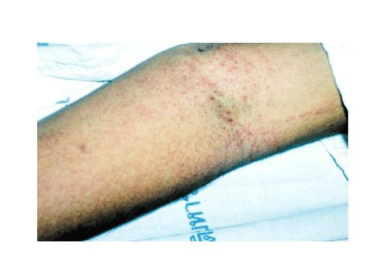 DHF: WHO Criteria for diagnosis Often occurs with defervescence of fever, swelling All of the following must be present: § Fever § Hemorrhagic tendencies: § +ve tourniquet test § Petichiae, ecchymosis or purpura § Bleeding from other sites § Thrombocytopenia (<=100, 000/cu mm) § Evidence of plasma leak § Rise in hematocrit > 20% above average § Drop in Hct § Pleural effusion/ascites/hypoproteinemia