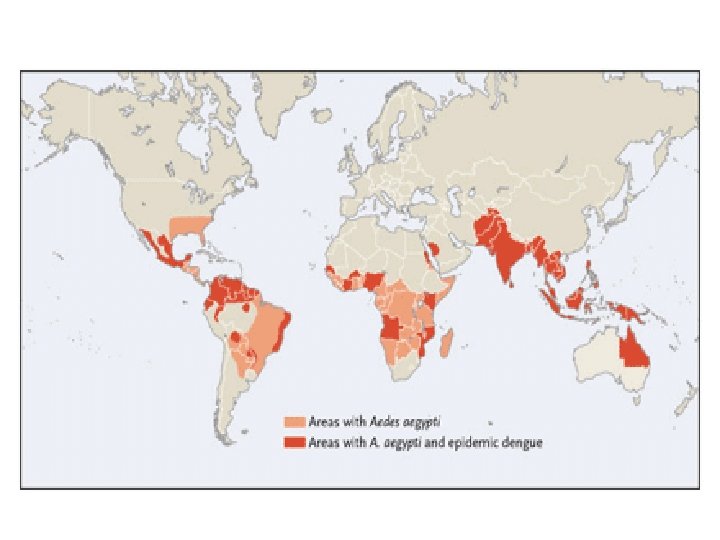 Dengue: History § First reported epidemics in 1779 – 80 in Asia, Africa and North America. § Considered a mild non fatal disease § Epidemics every 10 -40 years due to introduction of new serotype § After World War II, pandemic of dengue which began in Southeast Asia, expanded geographical distribution, epidemics with multiple serotypes and emergence of DHF