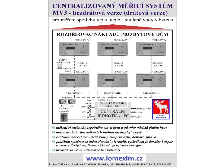 CENTRALIZOVANÝ MĚŘICÍ SYSTÉM MV 3 pro měření spotřeby tepla, teplé a studené vody v bytech Lomex LM s. r. o. tel. : +420516416945 www. lomexlm. cz Čapkova 22 mobil: +420603228623 info@lomexlm. cz, info@lomex. cz 678 01 Blansko mobil servis: +420777815497