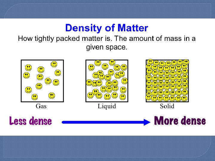 �The maximum density of MOST materials occurs in the SOLID phase… � solids have high densities � gases have low densities