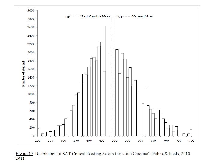 Normal Distribution If you took a large sample of observations and graphed any of the following: – – – – Heights Corn yield per year in Indiana SAT (or ACT) Scores Blood pressure Age of graduate students at De. Paul Weight of M&Ms per large package Etc, etc you would see that they all had a normal distribution. When looking at data, the Normal distribution is the most commonly encountered distribution in the ‘real world’. Because this distribution is so common, we’re going to spend quite a lot of time studying it and learning how to find out all kinds of statistics from it.