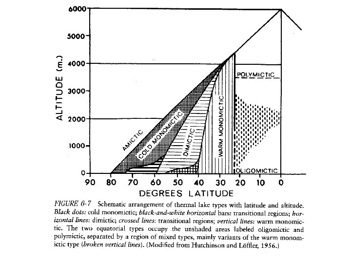 Pressure Effect on Density: • Greater pressure decreases the temperature of maximum density. • Both water depth and altitude (relative to sealevel) will change pressure. – The bottom of a deep freshwater lake may be colder than 3. 98ºC (max. density at 1 atm). Changes by about 0. 1ºC per 100 m. – A high altitude lake may have slightly warmer bottom temperature than an identical lake experiencing identical climate at sea level. – Similar influences of temperature and pressure on biological processes will happen at different depths for identical lakes at different altitudes (all other factors being constant).