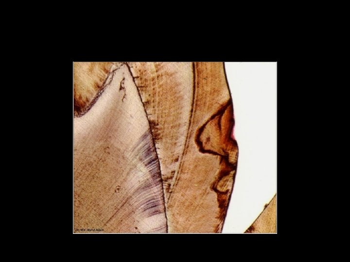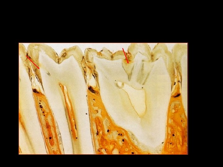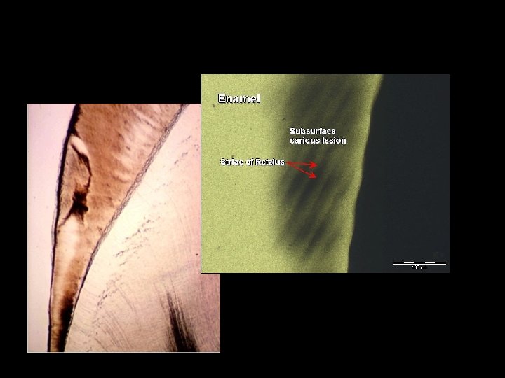 • The first change seen histologically is the loss of inter-rod substance of enamel with increased prominence of the rods. • -this is followed by the loss of mucopolysaccharides in the organic substance. • -presence of transverse striations of the enamel rods, • - accentuated incremental lines of Retzius