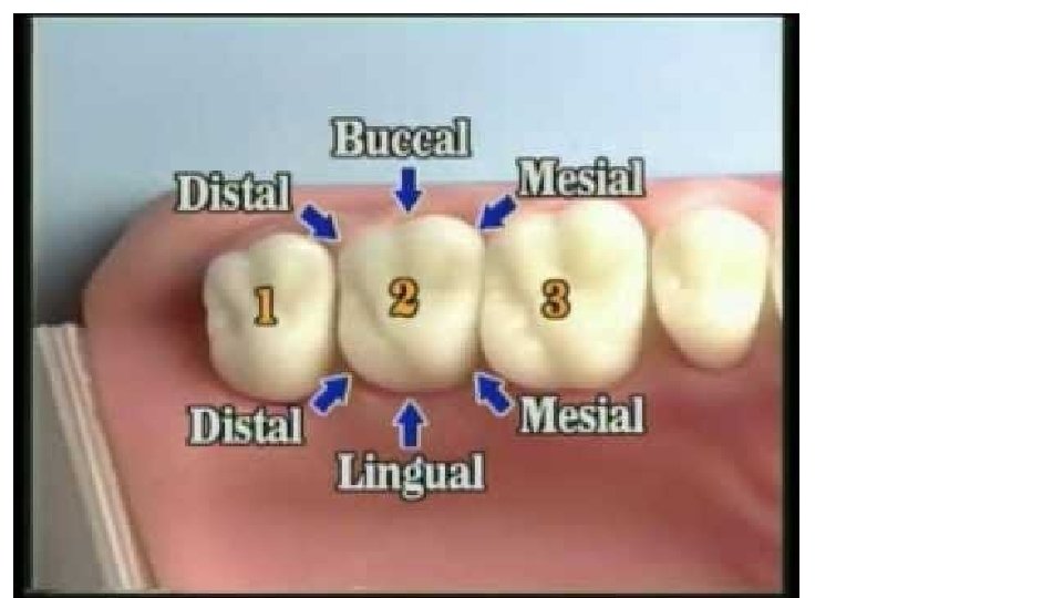 Surfaces of the teeth Incisal Edge Root Buccal (P) Occlusal (P) Lingual Occlusal (P) Buccal (P) Root F A C I Lingual (A) A L