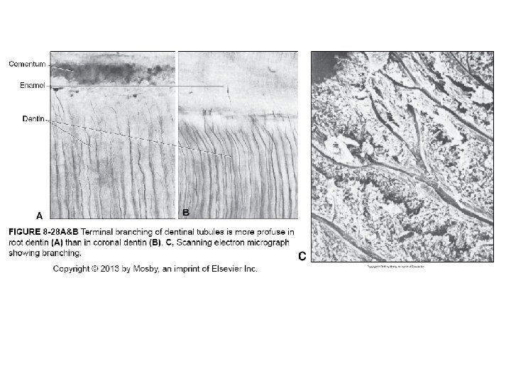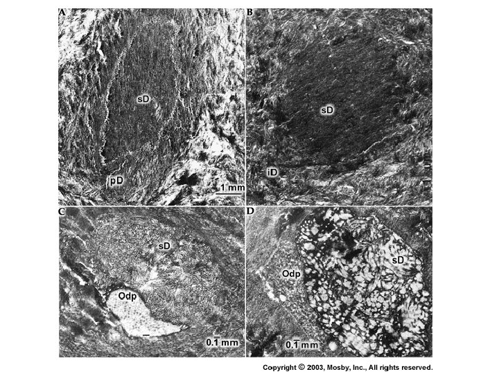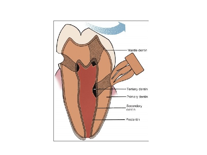 Age changes • Dentinal tubule complete closure Sclerotic dentin • Dead tracts of dentin – Retracted processes from tubules e. g. caries – Empty tubules with entrapped air in ground sections – Coronal dentin – Filled with reparative dentin
