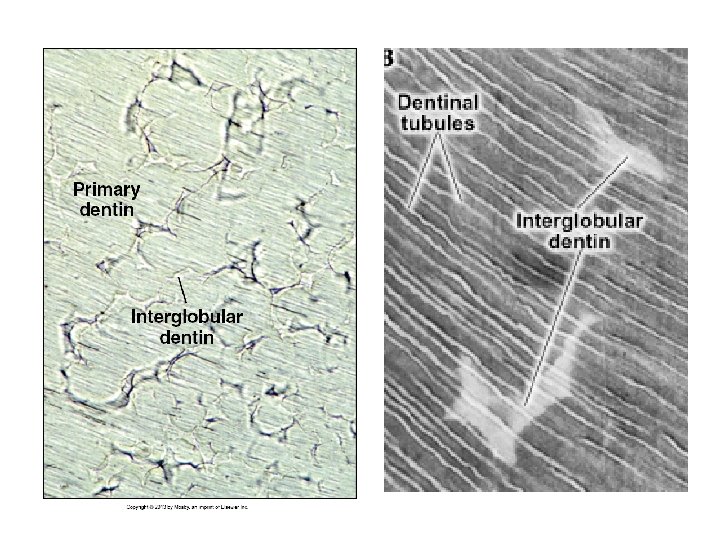 Intertubular dentin • Between tubules • Primary secretory product of odontoblasts