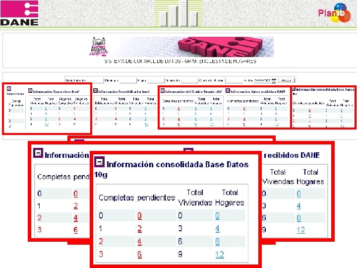 Proceso de acopio y procesamiento de datos controlado con reporte diario Validación Ejecuta las normas de validación a la base de datos Consolidación Proceso continuo efectuado en el DANE central Transmisión Centro de recolección de datos local Auditoria e indicadores Seguimiento a la cobertura