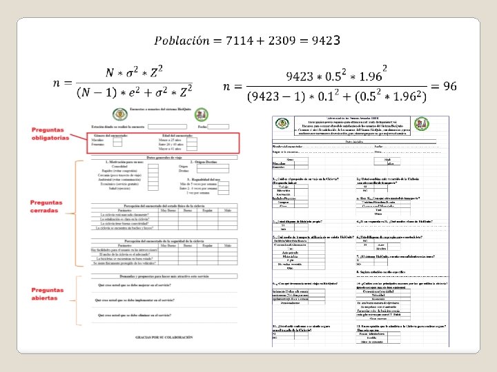 Ninguna 58 Playón de la Marín 6 Udla 3 Recreo 1 Parque Cumandá 2 Av. Gonzáles Suárez 1 H Carlos Andrade Marín 1 Estación Rio Coca 4 La Magdalena 2 Colegio Mejía 1 Pasteurizadora 1 Teatro Sucre 1 Colegio 24 de mayo 1 10 de agosto y Orellana 1 CNE 1 Parque bicentenario 1 Estación La Ofelia 1 CC El Bosque 1 Redondel de la Av. 6 diciembre e Interoceánica 1 H Baca Ortiz 3 Plaza Artigas 2 H Metropolitano 1 Colegio Montufar 1 Cumbayá 1 Principales resultados obtenidos -Sexo masculino mayoritario. -Población joven (25 -35 años) -60% uso diario -Comodidad y velocidad principales motivos -Motivo ambiental (11%) -Peligro de tráfico, falta de carriles segregados y cultura de respeto son principales problemas. -53% consideran que existe dificultad en intersecciones. -Ampliación del servicio al sur, restricción de tiempo, automatización del servicio y más bicicletas eléctricas es necesario para mejorar el servicio. -Necesario seguridad adicional en Ciclovía.