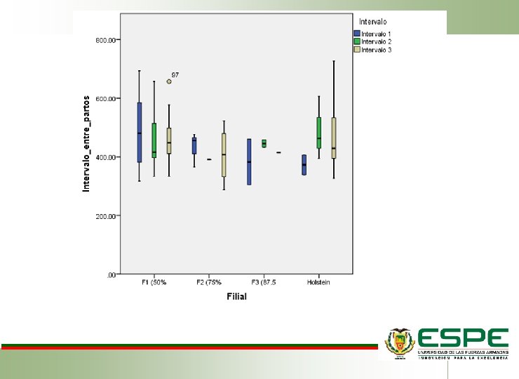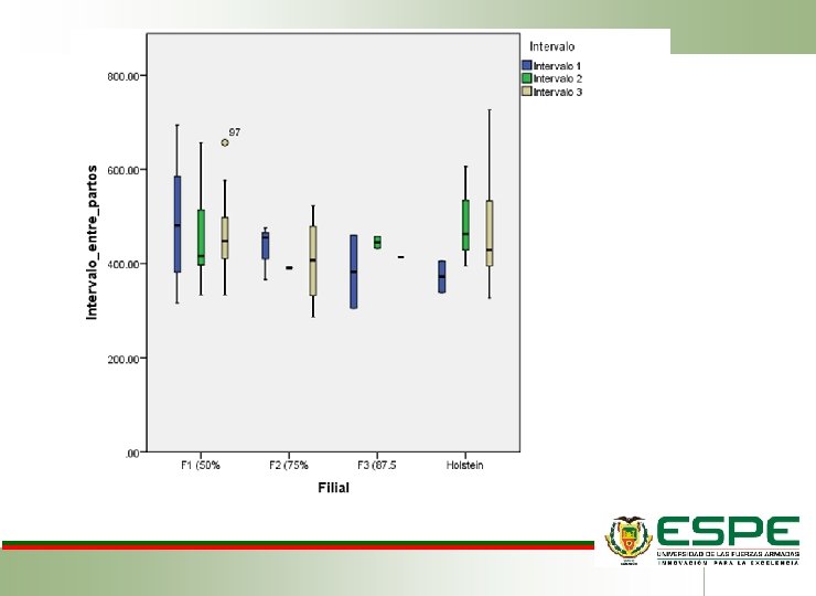 Análisis del intervalo entre partos • El intervalo entre partos se analizó en 213 lactancias, se obtuvieron 131 datos de intervalo.
