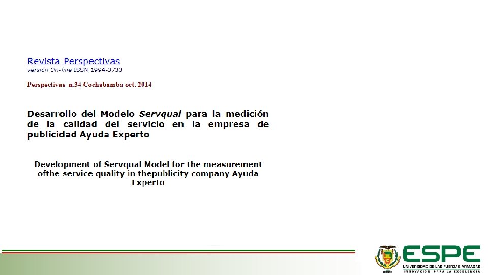 Objetivos Objetivo general • Analizar la calidad de servicio en el sector salud CIIU ¨Q 8690¨en la zona del Valle de los Chillos. Objetivos específicos • 1. Explicar la relación teórica entre calidad de servicio y satisfacción del cliente en el sector salud. • 2. Determinar los elementos tangibles del servicio y su relación con la percepción de calidad en los pacientes. • 3. Conocer si la fiabilidad y empatía del servicio prestado afecta positivamente en el valor de servicio percibido por los pacientes. • 4. Identificar la capacidad de respuesta y seguridad y su influencia en la calidad percibida por los pacientes.