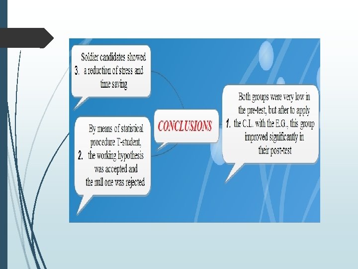 POST-TEST T- STUDENT ANALYSIS T-student calculated at 1. 80 is greater than T-student tabulated of 1. 67 which means it is outside the area of acceptance. The results of the T-student of this application let us state that the null hypothesis is rejected.