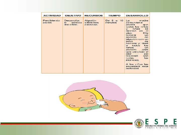 Objetivos GENERAL: ü Facilitar actividades específicas que permitan potencializar el área sensorio-motriz dirigido a niños/as de 0 a 2 años del Centro Infantil Estrellitas del Sur a través de técnicas y herramientas de la Estimulación Temprana. ESPECÍFICOS: ü Aplicar actividades destinadas a estimular los 5 sentidos para desarrollar el área cognoscitiva. ü Aplicar actividades destinadas a estimular el área motriz para desarrollar la motricidad gruesa y fina en el área psicomotriz. ü Afianzar el área afectivo –social de los niños/as a través del contacto y técnicas de Estimulación sensorio-motora.