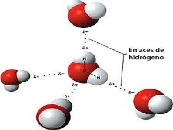 EL AGUA ES POLAR La distribución de la densidad electrónica en la molécula de agua no es homogénea debido a la diferencia en las cargas de los átomos que la componen, lo que se conoce como polaridad. Como el oxígeno posee una electronegatividad mayor que la del hidrógeno, los electrones compartidos en los enlaces de la molécula son atraídos con mayor fuerza hacia el oxígeno, con lo que adquiere una densidad negativa y el hidrogeno una carga positiva.