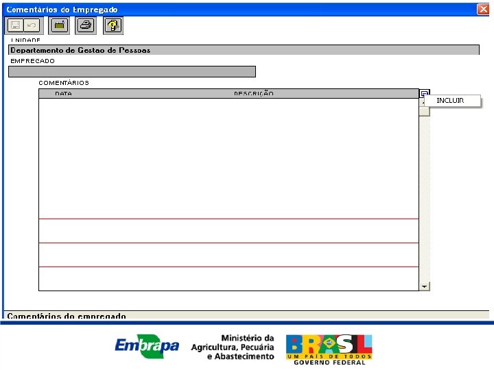 RESPONSABILIDADES DO EMPREGADO • Negociar suas atividades com o supervisor e inserí-las no Plano de Trabalho, na fase de Planejamento. • Verificar constantemente seu planejamento, para certificarse de estar desenvolvendo todas as atividades previstas. • Acompanhar sua avaliação e sua nota por meio do sistema. • Manter cópia da avaliação final, com assinatura do supervisor.