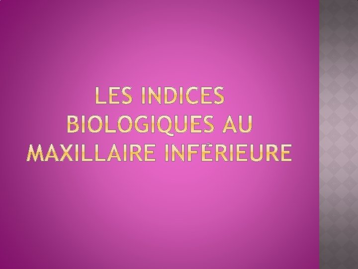 DEPARTEMENT DE CHIRURGIE DENTAIRE SERVICE DE PROTHESE COURS DE PROTHÈSE DENTAIRE 2 EME ANNÉE DE CHIRURGIE DENTAIRE ANNÉE UNIVERSITAIRE 2016/2017 Les indices biologiques Présenté par Dr /DIB. N
