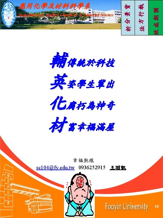 Department of Applied Chemical Material Science Department of Slides: 16 Download presentation 效成期預 法方行執 Department of Applied Chemical & Material Science 析分景背 應用化學及材料科學系 應用化學及材料科學系 Department of Applied Chemical & Material Science https: //youtu. be/S 6 TDBTUWCSE https: //www. youtube. com/watch ? v=IRJDW 3 lk. G 4 w&t=50 s https: //www. youtube. com/watch ? v=e 8 w 4 Ai. I 7 ui. Q&t=3 s https: //www. youtube. com/watch ? v=PV 6 X 7 TMCTSg&t=37 s https: //www. youtube. com/watch ? v=mz 5 d 38 u. RDQM https: //youtu. be/j. JIPrg 558 d. Y https: //www. youtube. com/redire ct? q=http%3 A%2 F%2 Fhighsco pe. ch. ntu. edu. tw%2 Fwordpress %2 F%3 Fp%3 D 11553&event=vi deo_description&v=3 Jiu. VUMmy TI&redir_token=Wkgd. AAQCBf 2 esd 8 q_B 0 SVe. Uc. QUN 8 MTUz. N TU 5 Nz. Yw. Nk. Ax. NTM 1 NTEx. Mj. A 2 https: //www. youtube. com/watch ? v=wpz. MV 1 e. CMBY 2021/6/7 5 2021/6/7 效成期預 Department of Applied Chemical & Material Science 法方行執 電子系 應用化學及材料科學系 析分景背 華梵 7 of 50