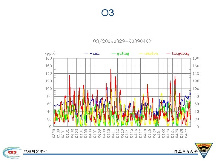 • Below a certain critical value of the ratio NO/O 3 , ozone loss through the sequence HO 2 + O 3 OH + 2 O 2 CO + OH H + CO 2 H + O 2 + M net : CO + O 3 環境研究中心 HO 2 + M CO 2 + O 2 國立中央大學