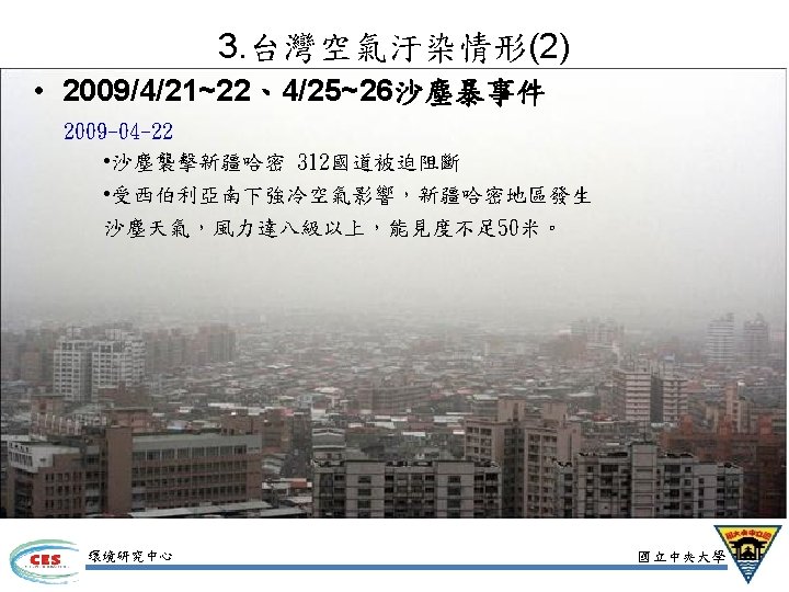 空氣汙染和全球暖化 王國英 Department of Atmospheric Sciences National Central University Chung-Li, Taiwan 環境研究中心 國立中央大學