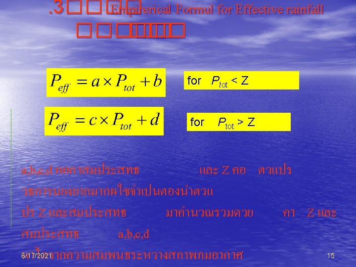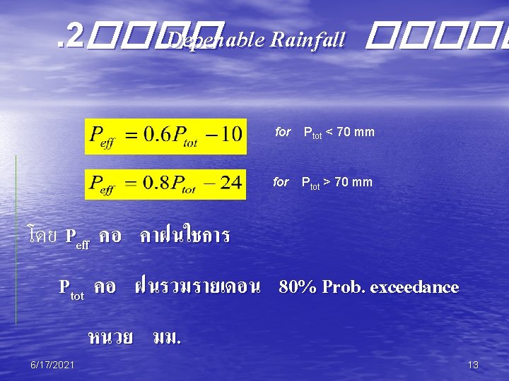 ����� 1. ���� Fixed percentage Effective rainfall ������� for a = 0. 7 to 0. 9 Peff ������� Ptot �������� : ��. 6/17/2021 11