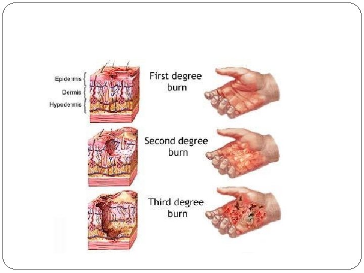 YANIK DERECELERİ II. Derece yanıklar Ø Deride içi su dolu kabarcıklar Ø Ağrılıdır Ø Derinin kendini yenilemesiyle kendine iyileşir