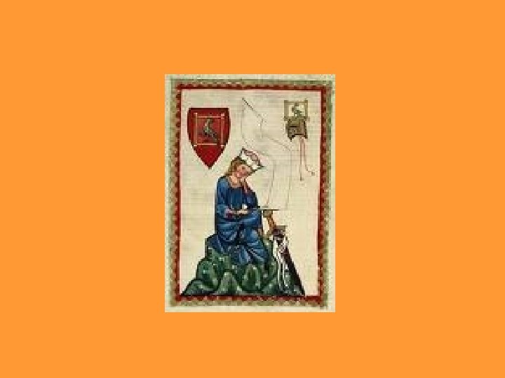 Walther von der Vogelweide (1170 -1230) • Er war der grösste Minnesänger. Er stammte aus Österreich, war am Hof in Wien, wo er einen wichtigen Minnesänger Reinmar von Hagenau kennen lernte. Später zog er von Hof zu Hof, ohne Ruhe zu finden. 1220 schenkte ihm Friedrich II. ein kleines Lehen ( feudo) in der Nähe von Würzburg. Dort lebte er bis 1230.