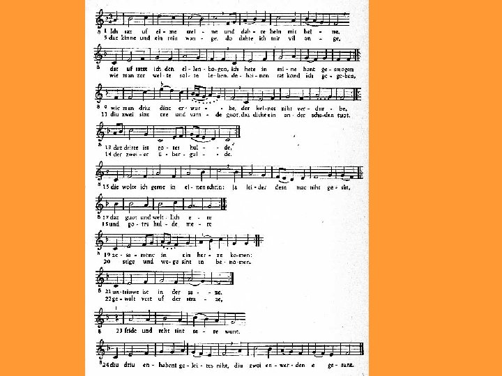 • Unter dem Einfluß von Reinmar von Hagenau war Walter einige Zeit Sänger der hohen Minne. Er besang aber auch das einfache Mädchen und die erfüllte Liebe. • Zu den schönsten Liebesliedern Walthers gehört „ Unter der Linden“