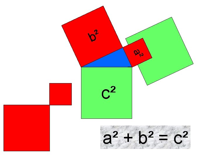 Anleitung: 5. Nimm alle Dreiecke weg! = Ist nun das übriggebliebene grüne Quadrat der Fläche nach größer, kleiner oder gleich den beiden roten Quadraten? Begründe!