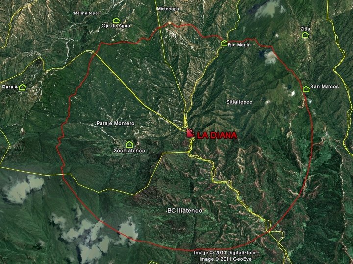 CONCESIONES MINERAS EN LA COSTA-MONTAÑA • LA DIANA: q q Superficie: 15, 000 hectáreas. Empresa: CAMSIM – Canadiense Núcleos agrarios afectados: Zitlaltepec Ø Iliatenco Ø Paraje Montero Ø Malinaltepec Ø