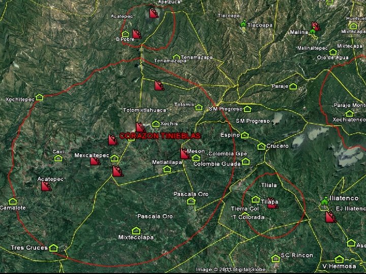CONCESIONES MINERAS EN LA COSTA-MONTAÑA • CORAZON DE TINIEBLAS: q q q Superficie: 50, 000 hectáreas. Empresa: HOCHSCHILD – Inglesa Núcleos Agrarios afectados: Totomixtlahuaca ØAcatepec ØTenamazapa Ø Pascala del Oro ØColombia de Guadalupe ØIliatenco Ø Tierra Colorada ØTilapa ØSan Miguel del Progreso Ø