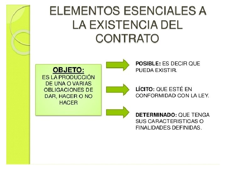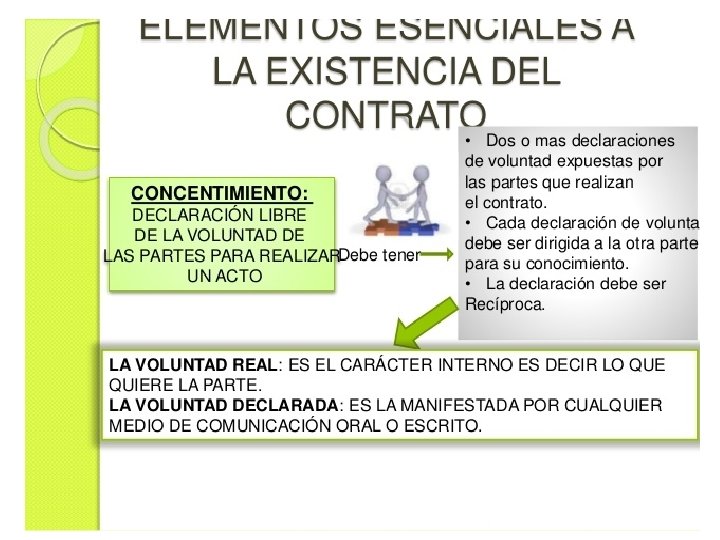 Los elementos esenciales del contrato Según el art. 1552 del Código Civil: «No hay contrato sino cuando concurren los requisitos siguientes: 1° Consentimiento de los contratantes. 2° Objeto cierto que sea materia del contrato. 3° Causa de la obligación que se establezca» . El consentimiento, objeto y causa son los requisitos del contrato, a los que hay que añadir el requisito de forma en el supuesto de los contratos formales. Los requisitos que enumera el art. 1552 son los elementos esenciales del contrato puesto que su concurrencia es necesaria para que el contrato exista (PUIG BRUTAU, 1986).