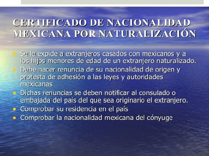 NATURALIZACIÓN El órgano competente en esta materia es la Cancillería Mexicana VERIFICAR TRÁMITES EN LA PÁGINA