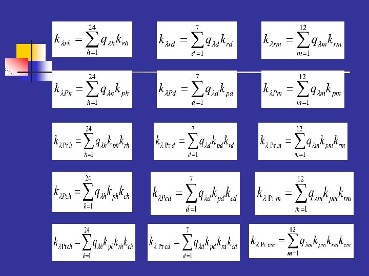 Name OSRAM Name Length (km) 5, 50 N° Transf. 1 OSRAM Imax (A) Voltage (k. V) 20 145 MV Cust 11 Long Int 1 Short Int 4 Pmax (k. W) Pav (Kw) 2755 1570, 35 Total Int 5 Av. dur. 0. 47 h Annual int time 2, 33 h Relative monthly variation in failures, repair time, load and specific interruption cost for the line “OSRAM”. Jan Feb Mar Apr May Jun Jul Aug Sep Oct Nov Dec q m 0. 12 0. 10 0. 04 0. 08 0. 14 0. 10 0. 07 0. 06 0. 04 0. 08 krm 1. 34 1. 30 1. 01 0. 84 0. 75 0. 70 0. 72 0. 81 0. 86 0. 97 1. 12 Pm/Pa 1. 00 1. 02 1. 03 1. 04 1. 03 0. 99 1. 01 1. 05 1. 06 v cm/crf Relative weekly Day q d krd Pd/Pav cd/cref variation in failures, repair time, load and specific interruption cost for the line “OSRAM”. Mon Tue Wed Thur Fri Sat Sun 0. 17 0. 14 0. 15 0. 16 0. 14 0. 10 0. 93 0. 96 0. 99 1. 01 1. 22 1. 07 1. 00 1. 00 0. 88 1. 03 1. 07