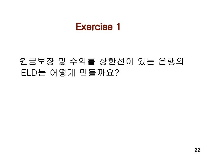 Exercise 2 Can you decompose the following financial products into more basic underlying and derivative products? Callable Bond Convertible Bond BW(Bond with Warrants) 23