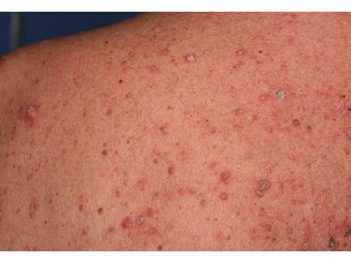 Carcinomes cutanés • Kératoses actiniques, papillokératome • Carcinomes épidermoïdes (30%), • Kératoacanthomes, • Carcinomes basocellulaires