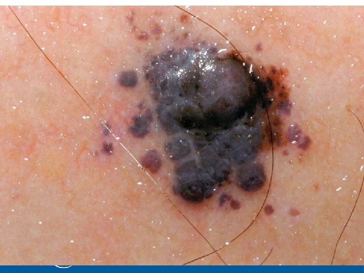 Melanoma This is a pigmented lesion. The way to describe pigmented lesions is: ‘This is a pigmented lesion…’ and then follow the ABCD algorithm where: A asymmetry B boarder (regular or irregular) C colour (how many, uniform or irregular) D diameter of the lesion This is a superficial spreading malignant melanoma (the most common form of melanoma)