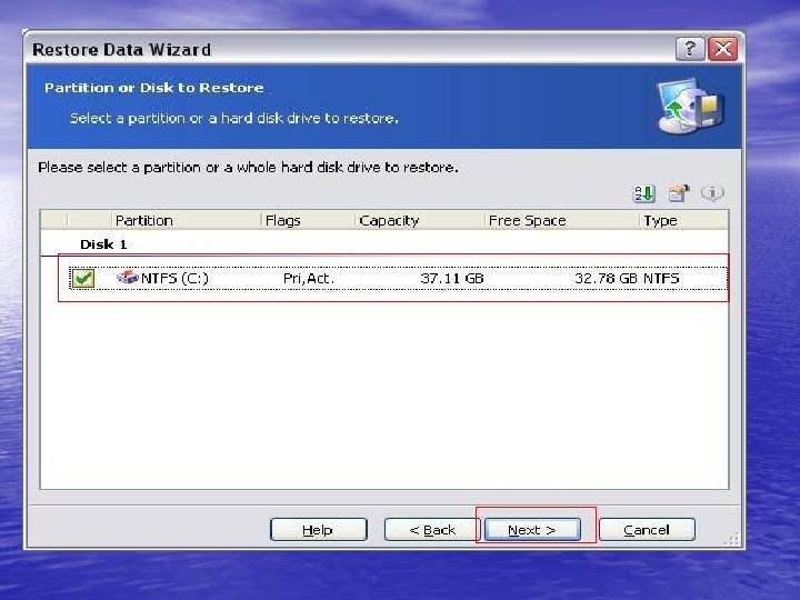 • C diskini seçip next deyin. • Diski analiz edene kadar bekleyin. • Gelen ekranda c diskini seçip next deyin. • Logical seçili iken next deyin. • Bu ekranda değişiklik yapmadan next deyin. • "Yes, I want to assign a logical drive letter to the restored partition" seçili iken ve aşağısında C yazarken next deyin.